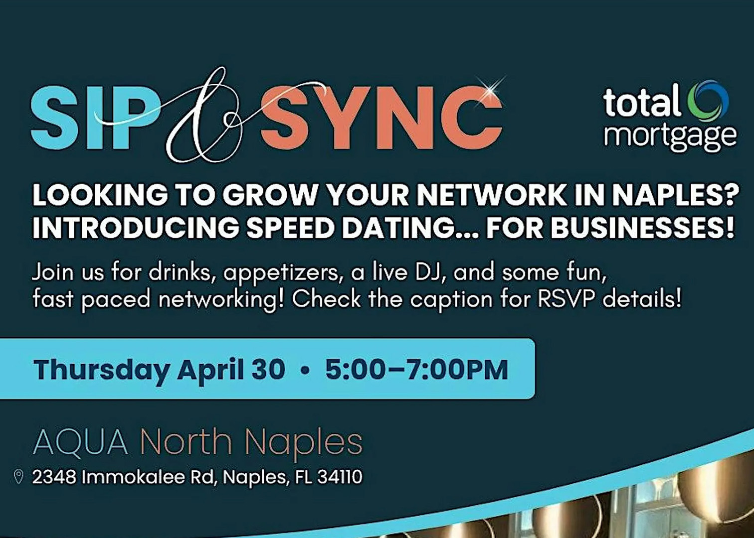 Thursday, April 30th at Aqua North Naples: 5 PM – 7 PM. Tickets can be purchased by visiting this link: Link to tickets.